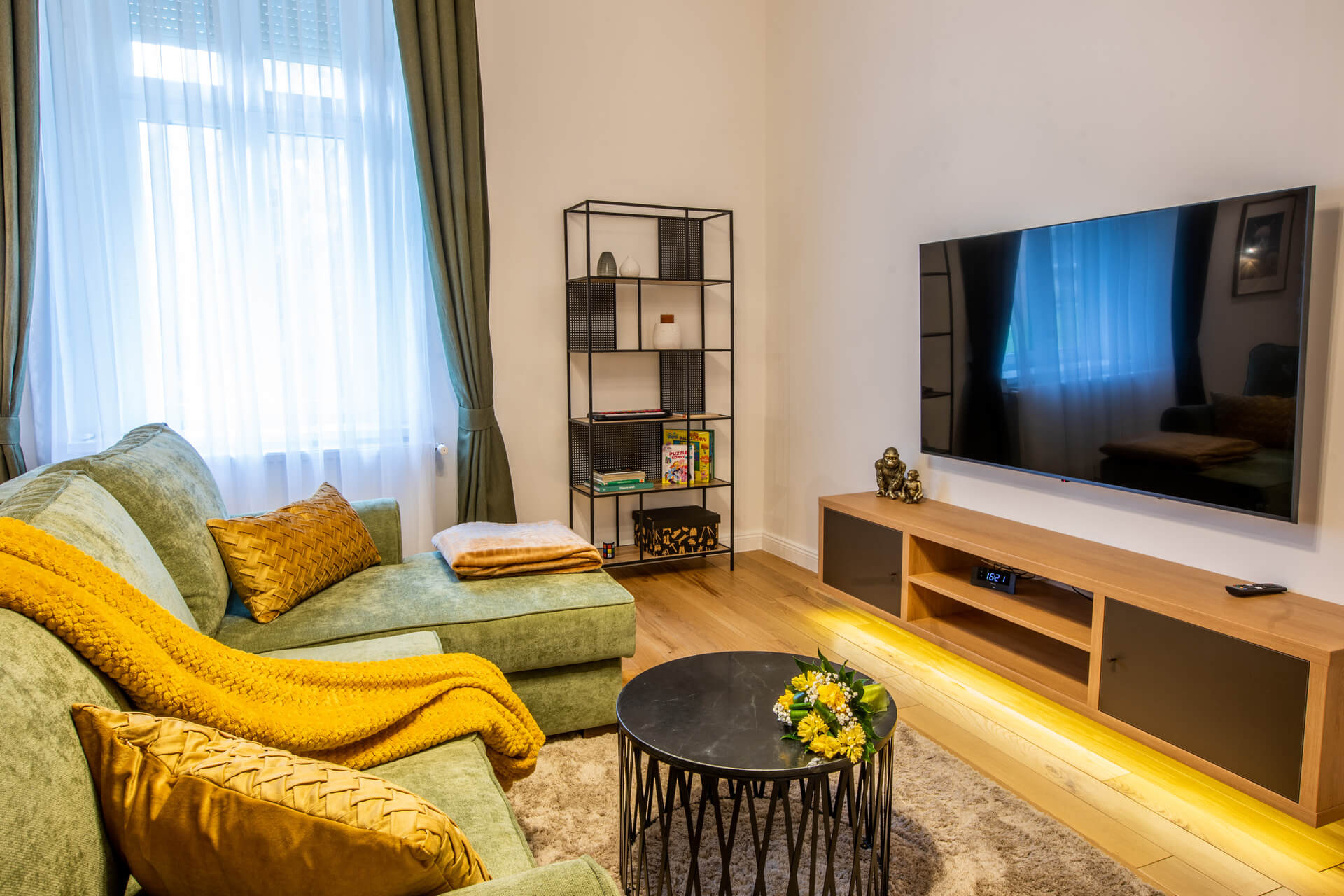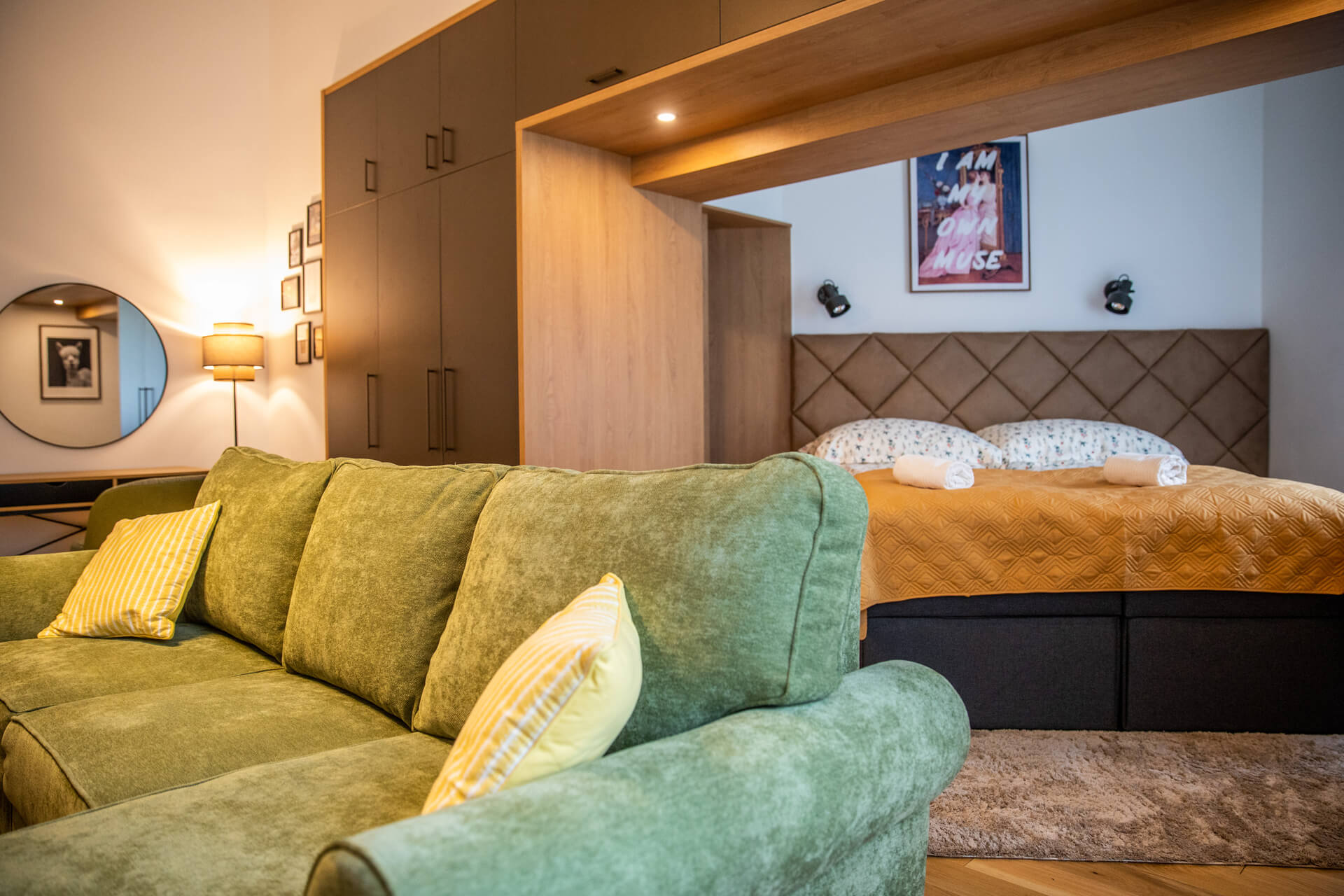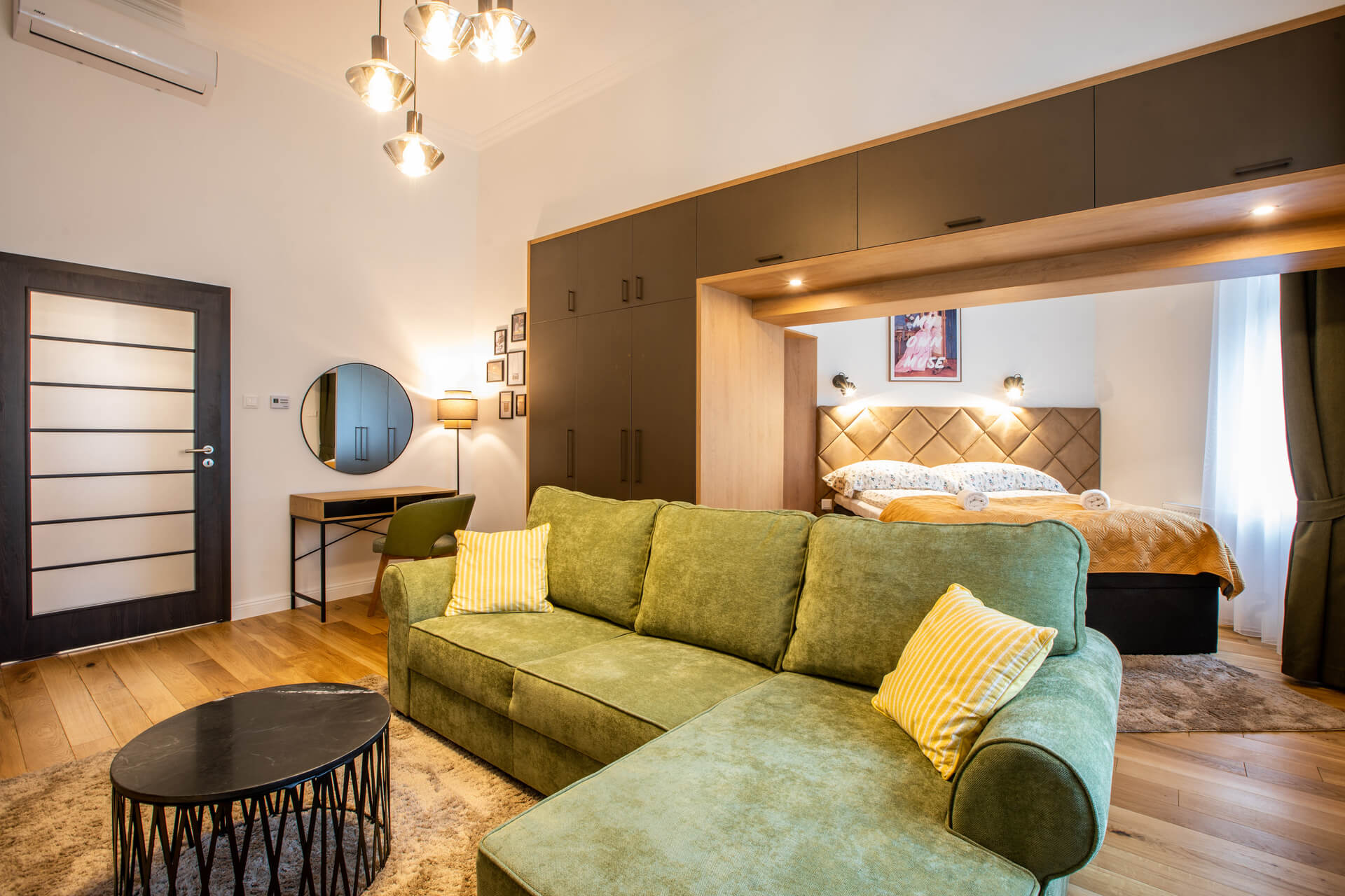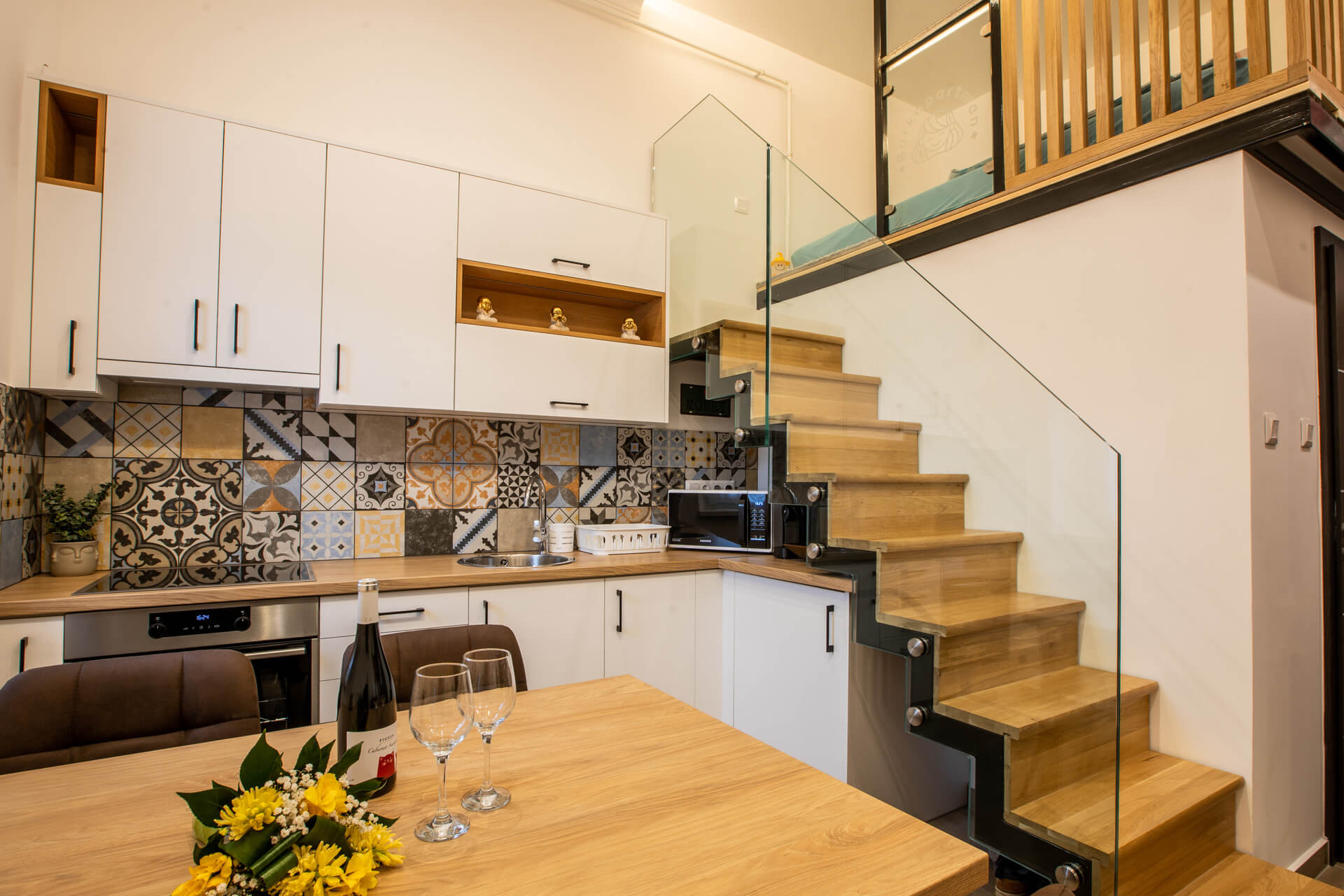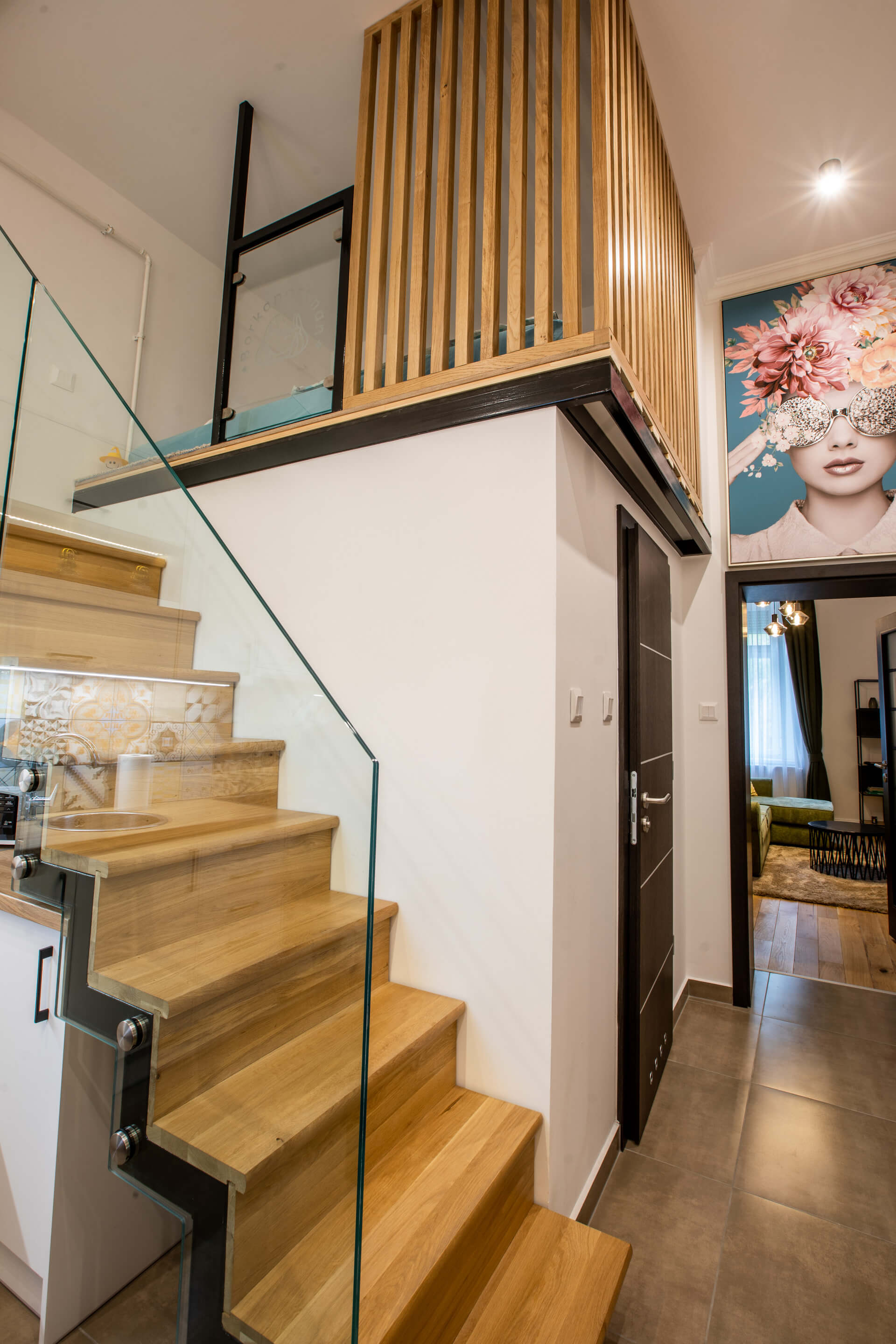 43m2-es galériás apartmanunk Szeged belvárosában található. Egész évben kiadó szállásunkat főként pároknak vagy kisebb családok részére ajánljuk méretéből adódóan.